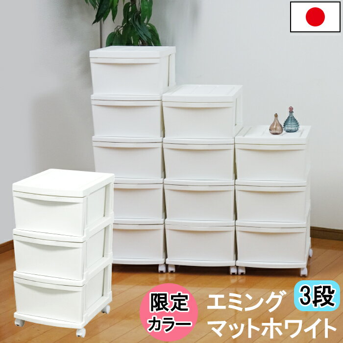 【衣替え】 【収納チェスト】 JEJ 限定カラー エミング 深型ストッカー 3段タイプ マットホワイト 【日本製】 中が透けない