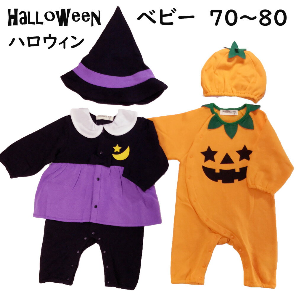 ハロウィン 長袖 カバーオール ベビー 赤ちゃん 衣装 帽子 コスチューム かぼちゃ 魔女 ウィッチ 男の子用 女の子用 男女兼用 70 80