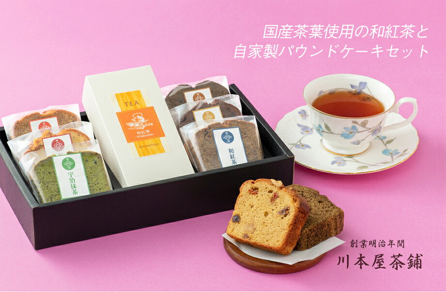 賞味期限 【パウンドケーキ】別途商品ラベルに記載(6月〜9月は約2週間、10月〜5月は約3週間)【和紅茶】開封後約1年*詳細は個別包装に記載 生 産 地 【パウンドケーキ】自家製、国産原料使用【和紅茶】静岡県 原 材 料 【和紅茶】静岡県産 べにふうき茶葉 【パウンドケーキ】※パウンド6ピースの内容は店長お任せになります。