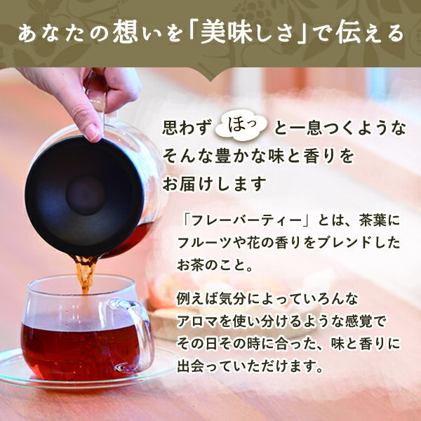 【フレーバーティー プチギフトセット】 フレーバーティーとは、茶葉にフルーツや 花の香りとブレンドしたお茶のこと。