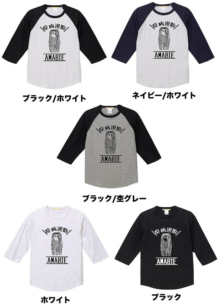 【メール便 送料無料】アマビエ 疫病退散 コロナ 感染防止 祈願 ベースボール Tシャツ 7分袖 ラグランスリーブ アマビエTシャツ メンズ レディース お友達 兄弟 姉妹 お揃い カップル 夫 ペアルック 誕生日 ギフト アマビエ様 グッズ
