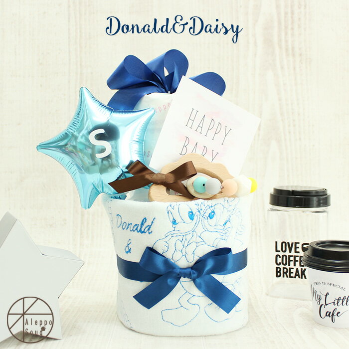 出産祝い オムツケーキ 名入れ刺繍 ディズニー プレートドナルド&デイジー 木のラトル おもちゃ 風船 バルーン 男の子 女の子 パンパース メリーズ バルーン B60