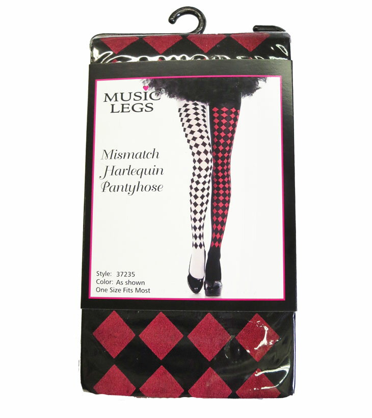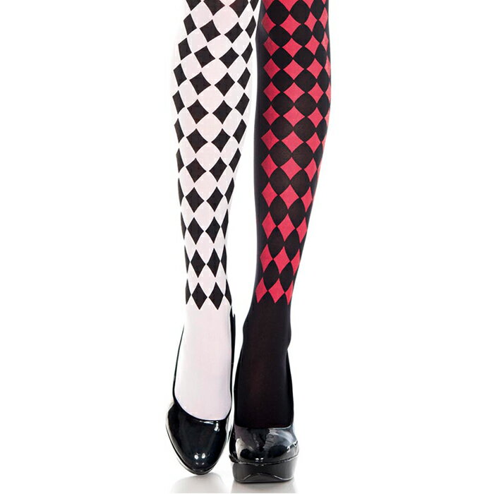 MUSICLEGS,ミュージックレッグス,ミュージックレッグ,靴下,コスプレ,レディース,ストッキング,カラータイツ,B系,ダンス,ダンサー,衣装,セレブ,レゲエ,シスター,ショーガール,結婚式,ウェディング,パーティー,黒,ブラック,ハロウィン,ハーレークイン,アリス,チェック柄,赤,レッド,白,ホワイト,左右色違い,ピエロ
